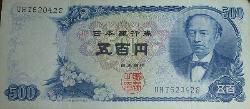 A friend in the next country I visited presented me with a 500 yen bill printed in the year I was born. This very old bill features the image of Iwakura Tomomi, a 19th century statesman involved in the Meiji Restoration. Of what country is this bill a souvenir? |