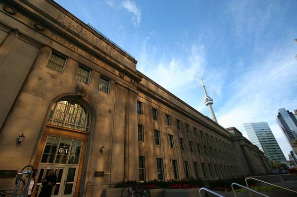 2. Yankee catches a one-way ViaRail trip across the Canadian border ending the ride in the country's largest city (which happens to be a capital, but not the country's official capital). From Union Station, he walks between the skyscrapers in which of these cities?
