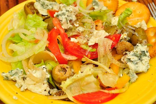 10. I left my own salad to be the last plateful, in case I got full - I knew I could always make some more for myself! I included an ingredient that is frequently included in salads, although some find it to be overly pungent. So what are those translucent white semi-circular vegetables in the picture?