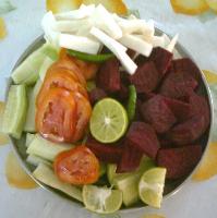 2. The next plateful of salad was an Indian vegetable platter that my older brother brought along. It had a number of interesting colors and textures in its vegetables. What vegetable was used to produce the reddish-purple wedges?