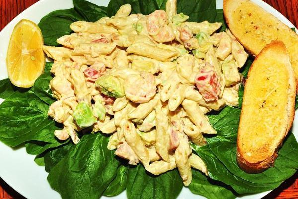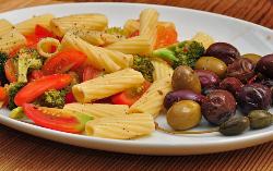 5. My cousin also thought a pasta salad would be a good idea, and brought along the one shown here. As we filled our plates, each individual's plate was given a layer of what leafy green vegetable on which the pasta was then placed? Popeye would definitely have chosen this one!