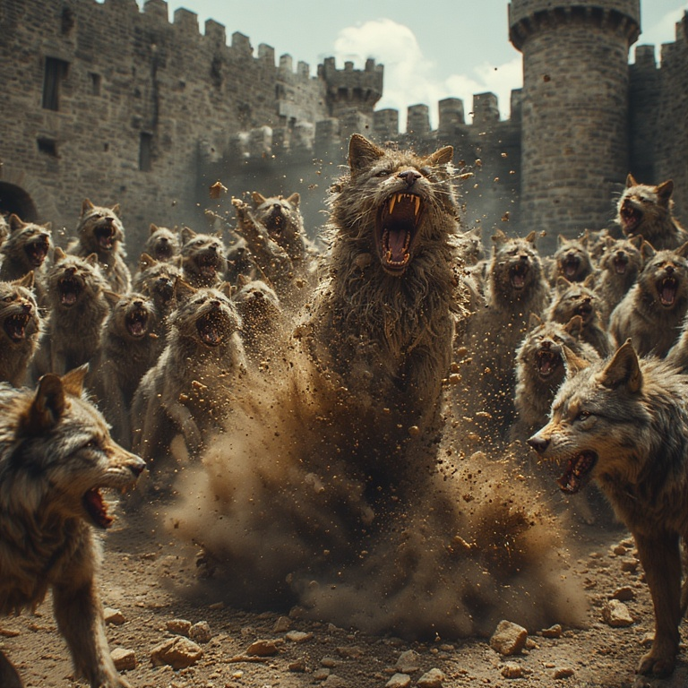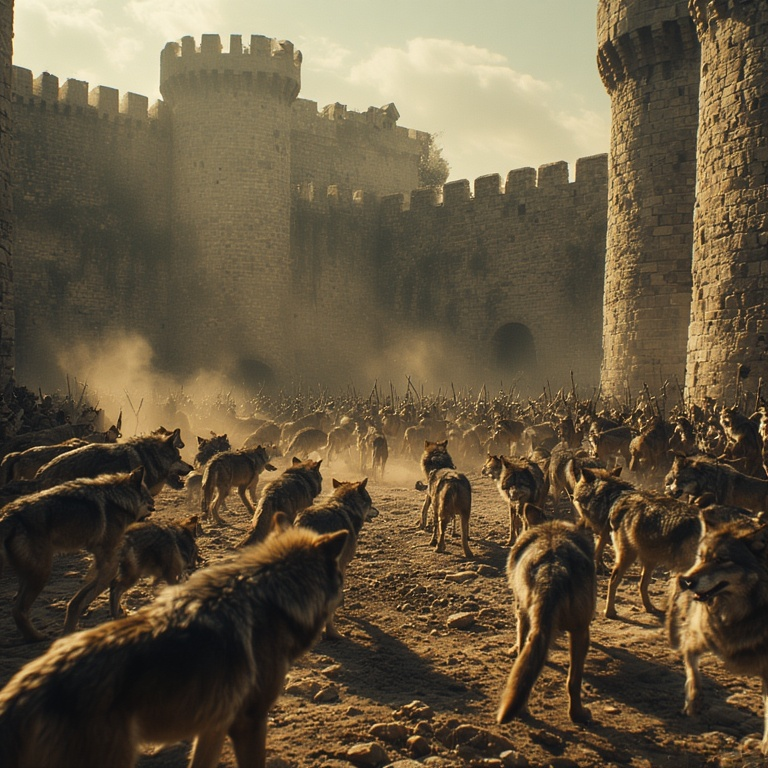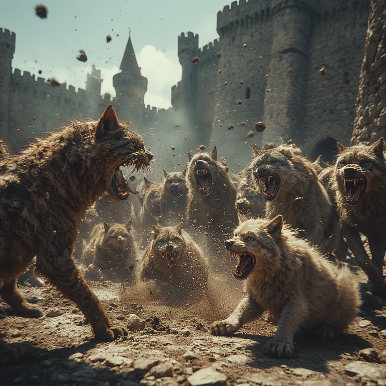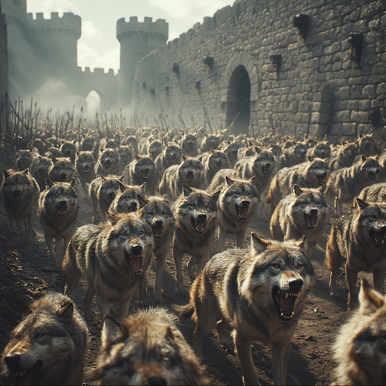 ...and at least 666, if not more, dire wolves, hungry and trained for just such an occasion, burst forth and charge towards the invaders