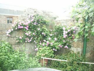 Yesterday I popped into the local tearooms to buy a piece of cake; they have the most wonderful homemade cakes and they greet me by name as I am a regular! They have a lovely little garden with some tables for people to sit out in clement weather. The garden is very sheltered but I was still surprised to see this climbing rose with so many blooms.  They are the old fashioned type and smell just wonderful, click here for a close up photo of a bloom.