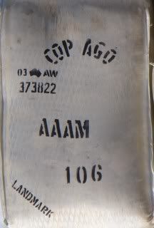 Here's a close up of the bale and the branding that's done to them. Our name up the top, then the classer's indentification, AAAM is the quality of the wool, it was the 106th bale and Landmark is the agent who we sell through.