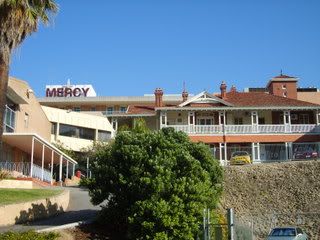 This is where I have been working on a temp job for the past three weeks. Mercy Hospital is a large Catholic hospital in Perth located on the banks of the Swan River. (Tomorrow I'll post the magnificent view from my window). On the right, in the foreground, you can see part of the original old hospital - the colonial style building. To the left is the more modern extension where all the specialists are located (where I have been working). The actual hospital is at the rear under the "Mercy" sign. Mercy Hospital was founded in 1937 by the Sisters of Mercy and was originally called St Anne's - so this year is its 70th anniversary. As a temp secretary, I have worked there a number of times for various specialists. I like working there - free security parking, and a short easy commute from home!