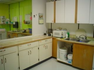 We have four rooms - a baby room, a toddler room for 19 months to 3 years, a preschool room for 3 to school age, and a before and after school program. I also do before school care, in addition to cooking. We're right in the school building, down the hall from kindergarten, so it's easy for the kids to move from their 'real' school to us. If the place is full there are 36 kids and 9 adults, but we are usually not quite to full strength.