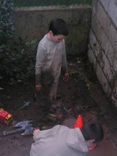 My kids had a ball yesterday playing mudbaths in the vegetable plot with rainwater which had gathered in some buckets outside. Needless to say Mum was less impressed when they let Dog romp through the house before being bathed!!! The kids, freshly showered that morning, had to go through it all a second time at the end of the afternoon, which didn't go down too well either My washing machine was worth it's weight in gold too, after the mudbath. It worked overtime in the garage while we all ate pancakes and drank hot chocolate in the cosy (and CLEAN) kitchen.
