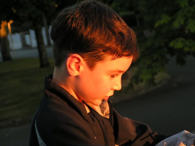Ah, Sandy, you have the bluest eyes! Please tell Spencer that I think he did a wonderful job capturing his beautiful grandmother. Oh, and Spencer is very handsome! I predict that by the time he is 15, he will have all the girls chasing him...hopefully he will be a fast runner.