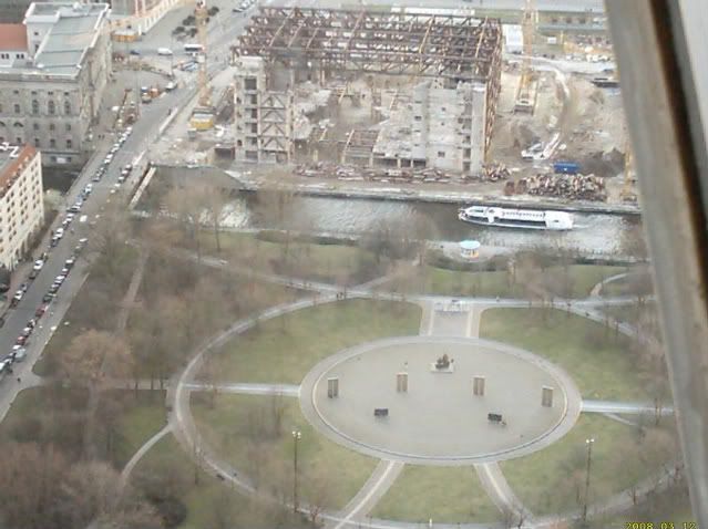 Super pictures all. Here's another view of Berlin from the TV tower, looking roughly west. The street running diagonally left to right is Unter Den Linden which leads to the Brandenburg Gate (just about visible).