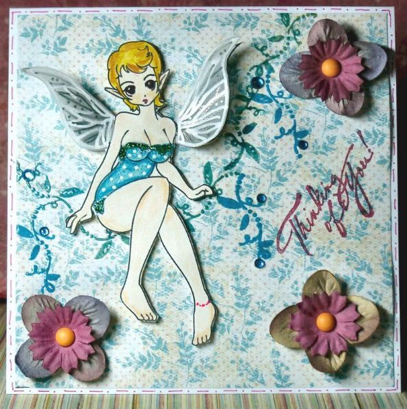Cute fairy, Denni! Your flowers are gorgeous. Where do you get your text stamps? (English ones, that is  )