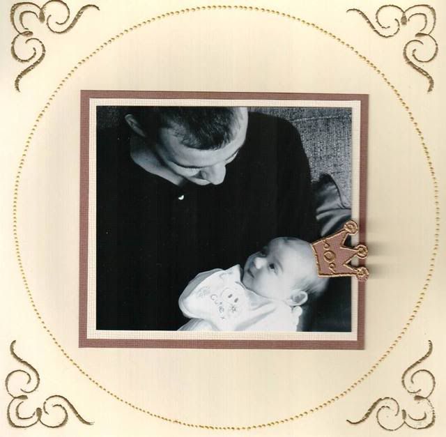 Well done Mrs and Mr TW!!! Mrs' quilts qre just fabulous I'm certain she more than deserved her wins! Cute poem too, and nicely presented. You more than likely won on merit not on absence of entries  As for cardmaking, It's hard enough coming up with feminine cards, let alone trying to be inspired for some guy ones! Your christmas ones are lovely Jane, gotta love the sparkle, eh? Hmm, for my own page, thanks for the feedback folks. The crown is definitely going. It is a bit cumbersome for such a teensy little human, isn't it? I really like your suggested quote, Copago. Now how on earth do I get that on the page? My handwriting is woeful and would ruin any layout  Oh, for the dots, I traced the circle in pencil very lightly using a dinner plate for the outline. Then I went over it with my tube of Tulip textured fabric paint, trying not to deviate too much from the circle and trying not to be too wobbly. Some dots are a lot bigger than others, and the spacing's not brilliant, but overall it looks OK (I think). Squeezing that tube 'just right' gets very tedious by the time you're quarter of the way round, believe me!