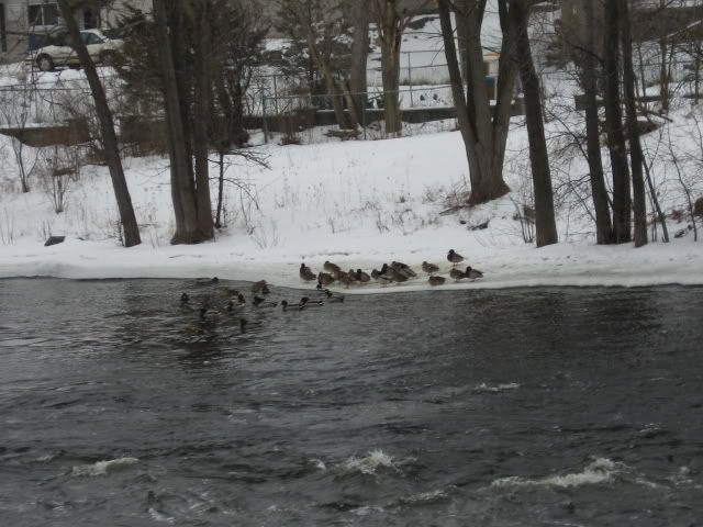 Mags, we had not had any temperatures above freezing until 2 days ago. But the snow is still piled pretty high on my patio table. Nice picture, liz. That water looks pretty cold, though. Those ducks are quackers for going in. Here is a woodpecker on an old electrical pole. I don't know why he was knocking on it. There couldn't be any insects in there this time of year.