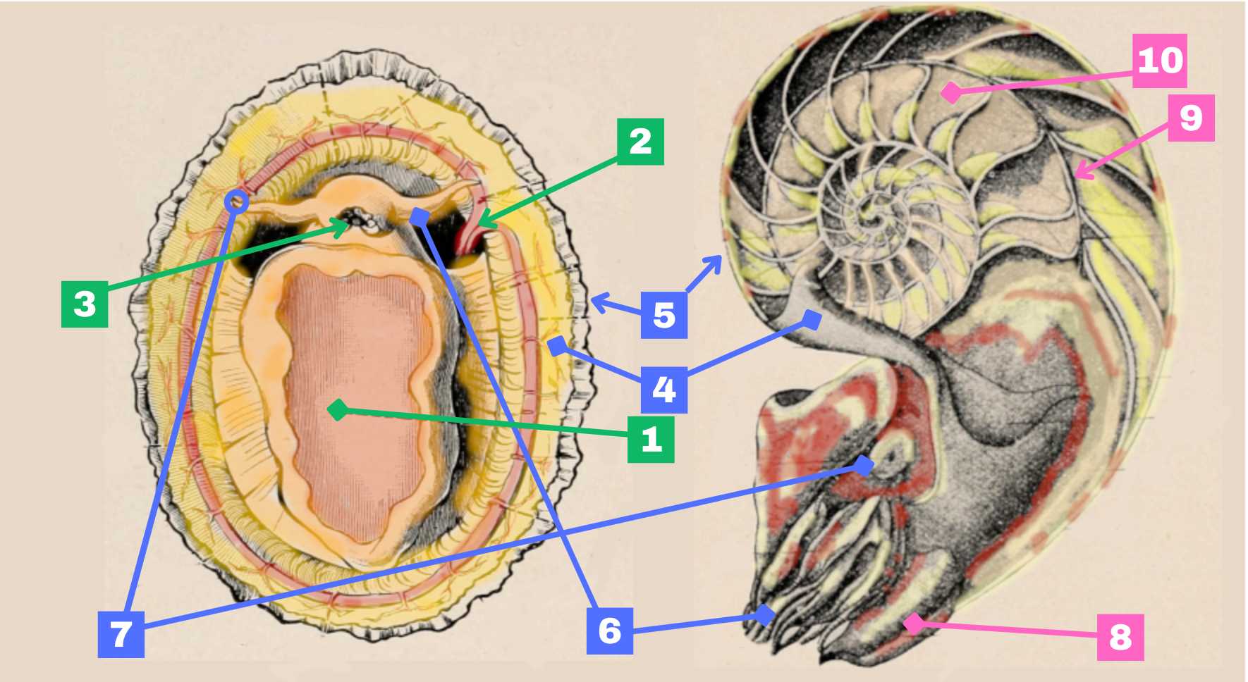 From clams to conchs to cuttlefish, gastropods to geoducks, slinky slugs to decapodal squids. Perhaps no animal clade is more diverse than the mollusks! This quiz will see you compare the anatomy of a pearly nautilus and a common limpet (a type of snail)
