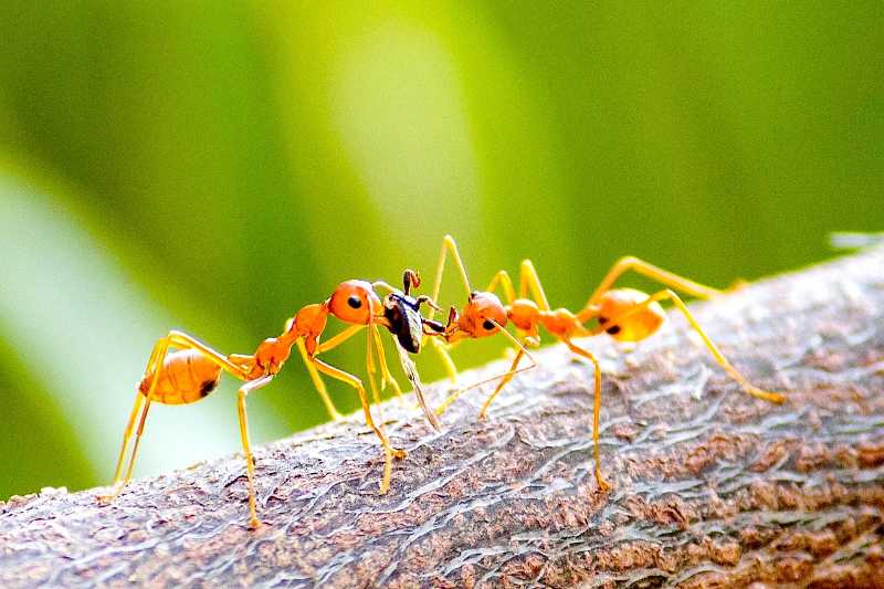 Whilst the source for this image lists these insects as fire ants, a bit of digging reveals them to be weaver ants; the metadata of the original source does however contain a grain of truth as the creature trapped between the two weaver ants is a fire ant! The weaver ant (Oecophylla smaragdina) takes no prisoners and they will work together to successfully predate many different creepy crawlies including, in this case, the fire ant (genus Solenopsis).