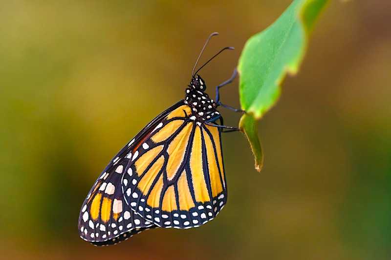 After pupating for approximately two weeks, the magnificent monarch butterfly emerges.