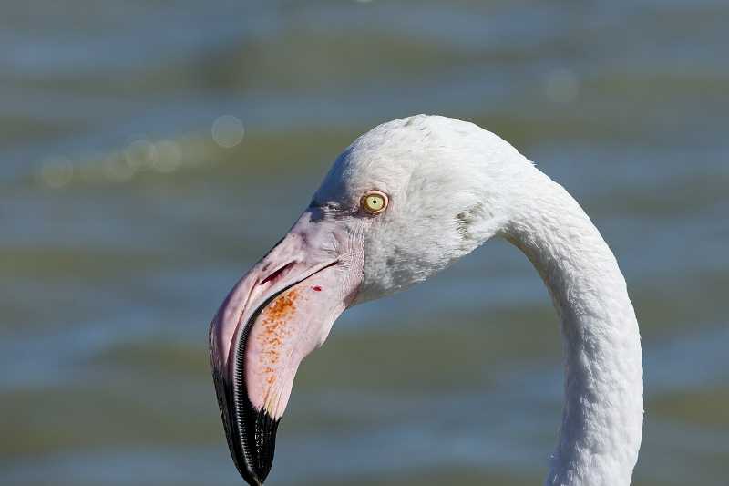 2. The beak of a flamingo has feathers on its lower jaw that it uses to filter its food.