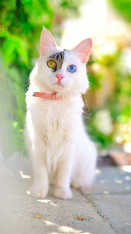 The Khao Manee is a rare and striking feline that originated in Thailand. There, it was once considered a sacred breed belonging only to royalty. Sometimes known as the "Diamond Eye" cat, its most breathtaking feature is its pure, snowy-white coat and its brilliant, jewel-toned eyes. While many members of the breed have two blue eyes or two gold eyes, the most highly prized individuals are those with dichromatism, one shimmering blue and one vivid amber or green. Their fur is short, smooth, and doesn't fluff up much.