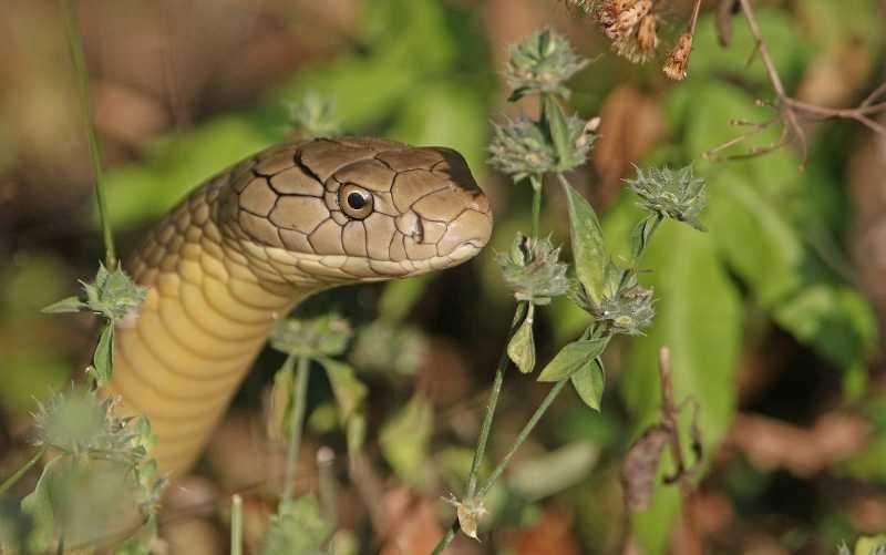 Despite its name, the black mamba is not black on the outside. Its skin ranges from grey to olive-brown. Its name comes from the inky black colouration inside its mouth, which it reveals when threatened.