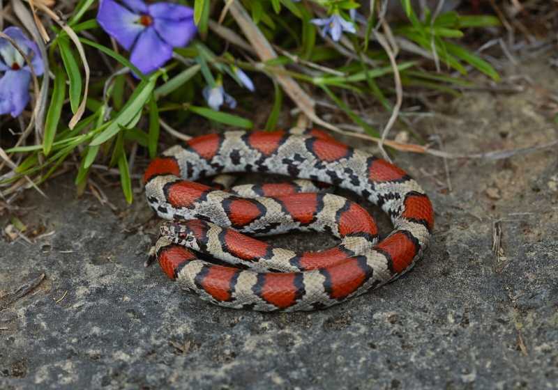 Native to the southeastern United States, the Eastern coral snake is a highly venomous species, which belongs to the Elapidae family. It is often nicknamed the American cobra, harlequin coral snake, or candy-stick snake. They usually measure between 20 and 30 inches (50-80 cm) in length.