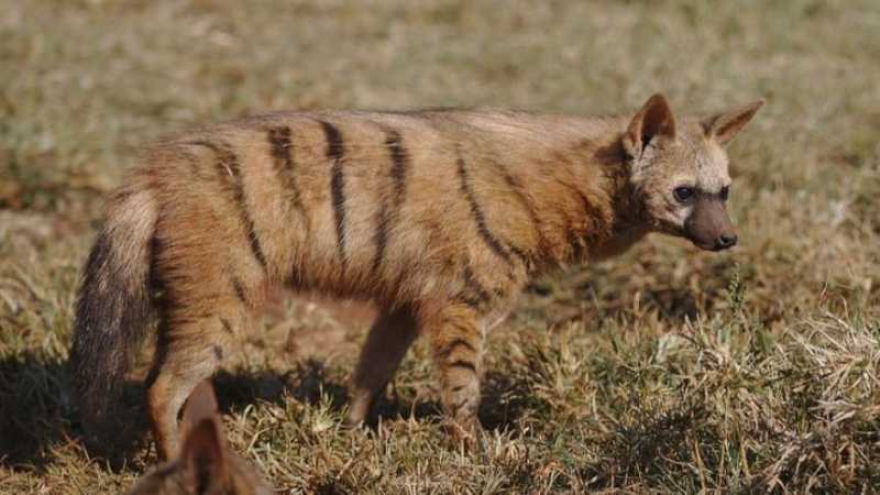 Its name means "earth wolf"... but it's not a wolf, it is a member of the hyena family, and it roams the regions of eastern and southern Africa.