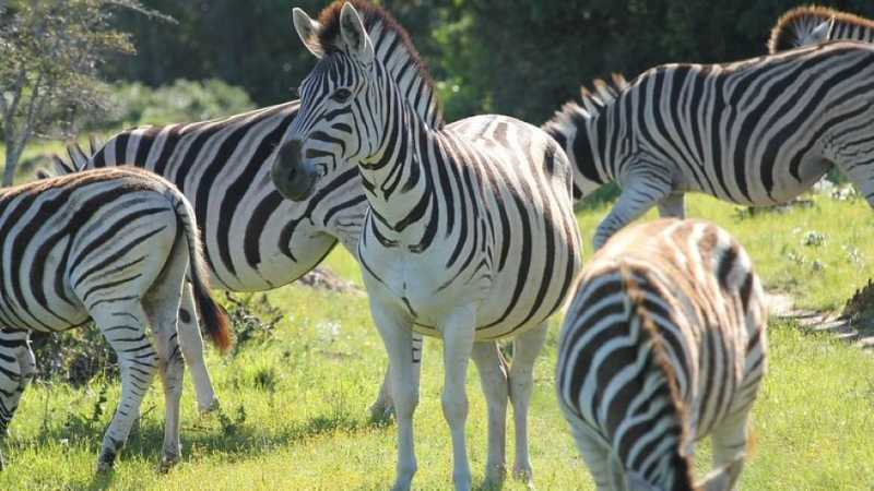 So why do they have stripes? Primarily, to protect them from biting horseflies and you may note that zebras living in areas that do not have these insects, are likely to have less in the way of striping. Initially there was a theory that the stripes aided camouflage by mimicking grass however, this has not been proven and is considered to be a furphy (tall tale). That said, when the herd moves as one the display can be quite dazzling and this will make it a little more difficult for a predator to single out an individual zebra.