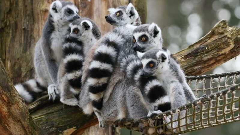 The striped tail (there are 13 black and white rings) is a vital communication device for the ring-tailed lemur. They will hold their tails up in the air so that the rest of the troop can identify where each other is and can easily follow. In addition, it becomes a warning signal when danger lurks.