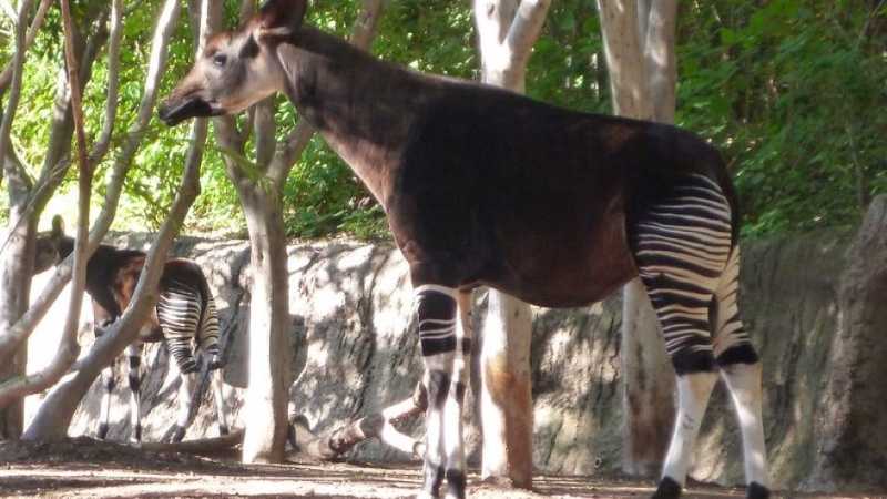 With its striking stripes on its hindquarters and legs, it is easy to make the mistake of thinking that the okapi is related to the zebra but, no, instead, it is the only relative of the giraffe. Found in the dense forests of the Congo Basin, it uses those stripes as camouflage. They break up the mammal's outline, which it cleverly uses to imitate light and shadow making them difficult for its main predator, the leopard, to spot.