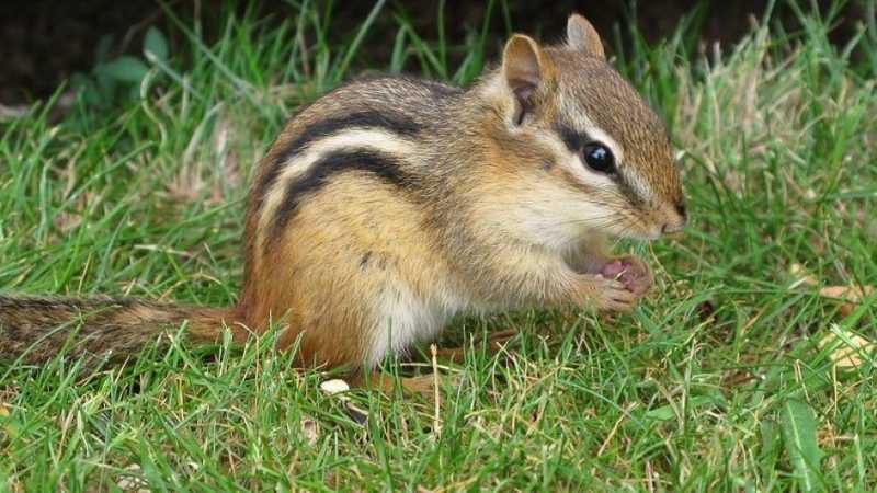 Running down the back of the Eastern chipmunk are five stripes that range in colour between black and dark brown, all on reddish-brown fur. Their tails are slightly darker. For the chipmunk, this is disruptive camouflage with the alternating colours allowing it to blend in with the woodland surroundings that it prefers to be in.