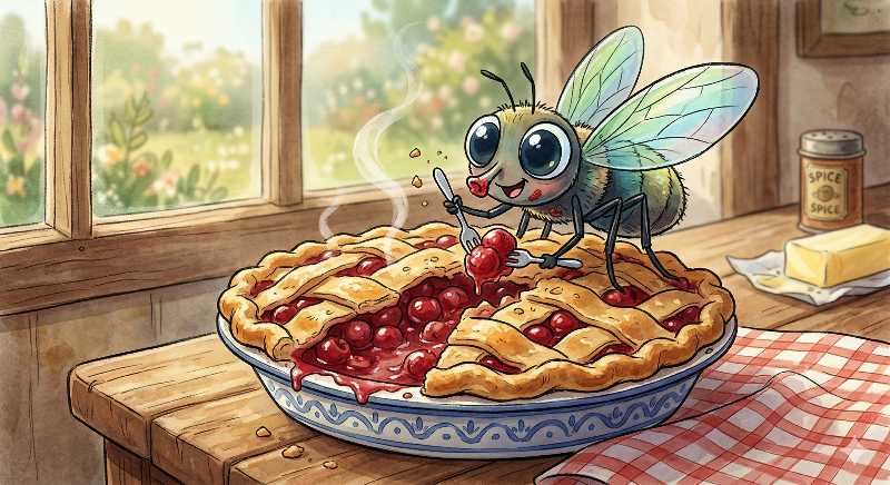 10. A winged household pest with a latticed-top dessert. A ____ eating a ____.
