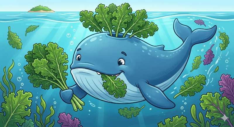 1. A large marine mammal with a member of the cruciferous family. A ____ eating ____.