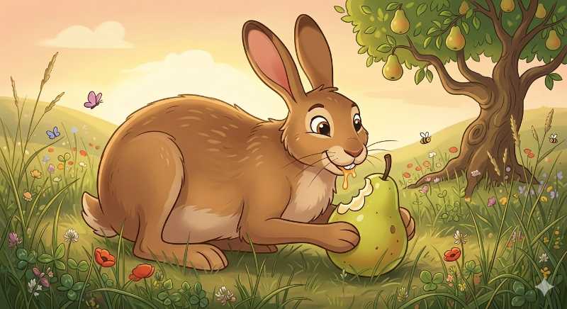 3. A large cousin of a rabbit with a bell-shaped fruit. A ____ eating a ____.