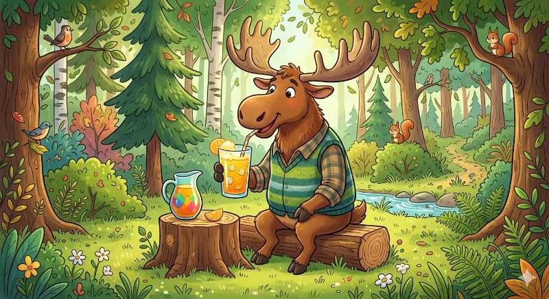 5. The largest member of the deer family with the output of squeezed fruit. A ____ drinking ____.
