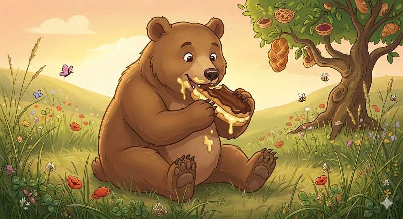 8. A grizzly with a French cream-filled pastry. A ____ eating an ____.