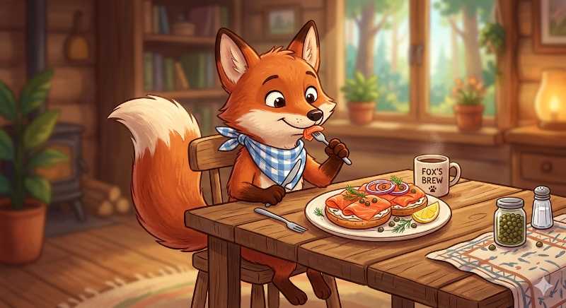 9. A clever vulpine mammal with some salt-cured salmon. A ____ eating some ____.
