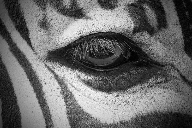 The stripes probably gave this one away as this eye belongs to a zebra, another animal which is found in Africa where they form large groups, called herds. The pattern of the stripes is different for each animal so individuals can be identified in studies.