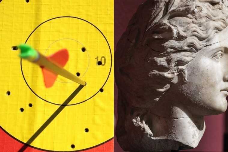 An arrow is a long, pointed stick used with a bow, and a head is the top part of the body where the eyes, ears, and mouth are. An arrowhead is the sharp tip on the front of an arrow.