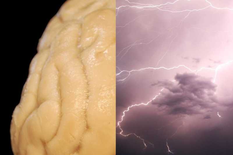 A brain is the part of your body that helps you think and learn, and a storm is strong weather with wind, rain, or thunder. A brainstorm is when you think of many ideas quickly.