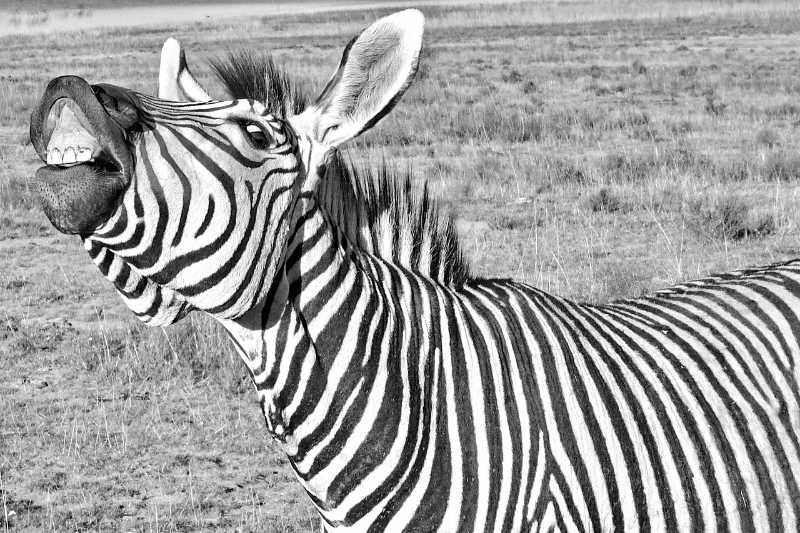 Zebras are one of the most recognizable wild animals and can be found throughout sub-Saharan Africa. They are herbivorous grazing animals and live mostly on grass and other vegetation, using their large front teeth to help them pull up grasses. So if a zebra did bite you, it would certainly be painful for you, but the zebra wouldn't enjoy the experience much either.