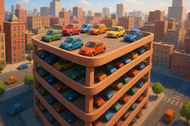4. In big cities, it's hard to find a spot for your parents to leave their car when they need to do things. What do you call the building where you can drive your car inside and leave it until you're ready to go home?