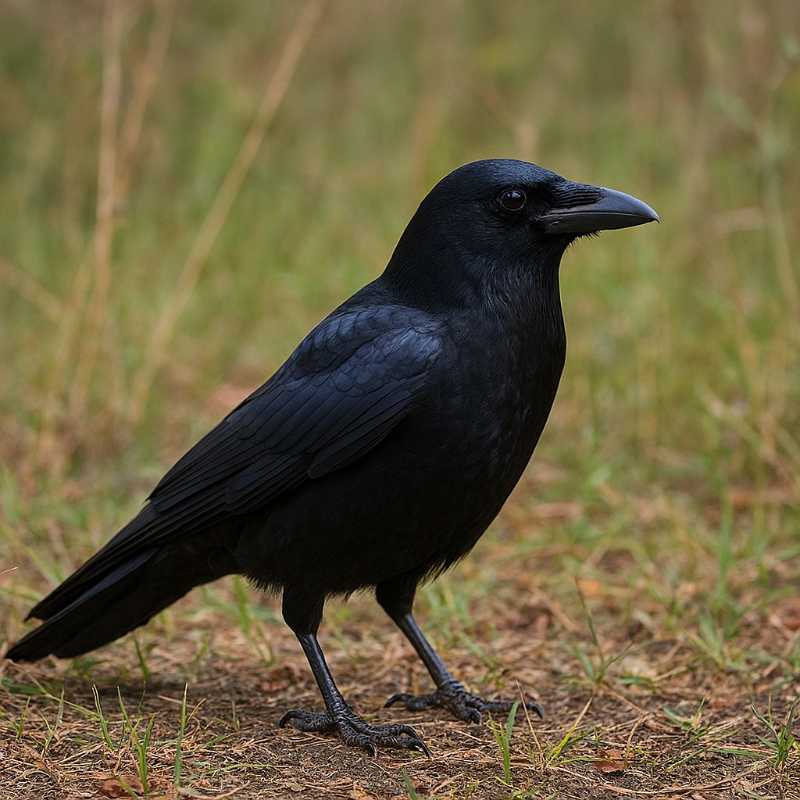 The American crow is a smart black bird that lives in many kinds of places across North America, including forests, farms, and cities. These crows are known for solving problems, using simple tools, and remembering people's faces. They eat almost anything: insects, fruit, nuts, small animals, and even leftovers from people.