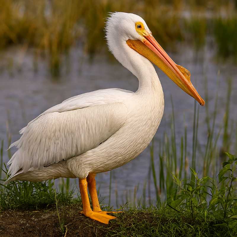 The American White Pelican is called Pelecanus erythrorhynchos by scientists. It is a giant water bird that lives in lakes, rivers, marshes, and shallow wetlands across much of North America in summer, and moves to coastal bays and estuaries in warmer places when winter comes.