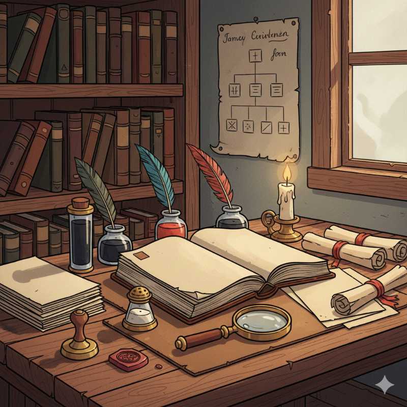 Scriveners were professional scribes who wrote and prepared legal documents, contracts, and correspondence before printing made this more accessible. The tools they used were quills, inkpots, parchment or paper, blotting sand and sealing wax. Their writing had to be precise, as a misplaced word or illegible mark could change the meaning or lead to disputes.