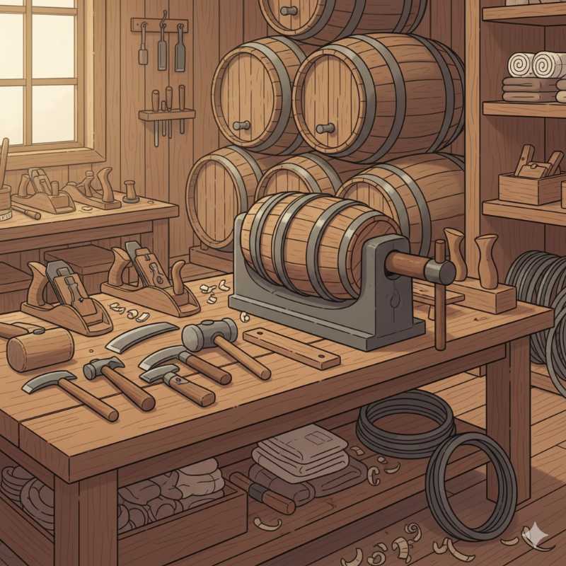 Coopers were important back then, as barrels were used as storage and shipping containers for centuries. Merchants, brewers, distillers, and farmers required them to keep goods safe and preserved. Their work had to be accurate, as a poorly made barrel could leak or burst. Modern industrial packaging eventually reduced the demand for wooden casks.