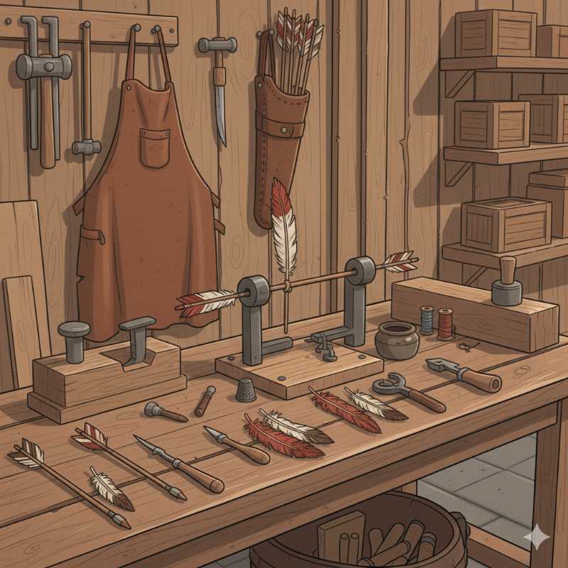Long before firearms became dominant, a fletcher was a specialist in making arrows. They used fletching jigs, knives, glue pots, feather presses and bundles of straight wooden shafts. They shaped and smoothed each shaft, fitted arrowheads and attached feathers (usually goose, turkey or swan) to guide the arrow's flight. The quality of a fletcher's work determined whether an arrow flew straight or wavered off course.