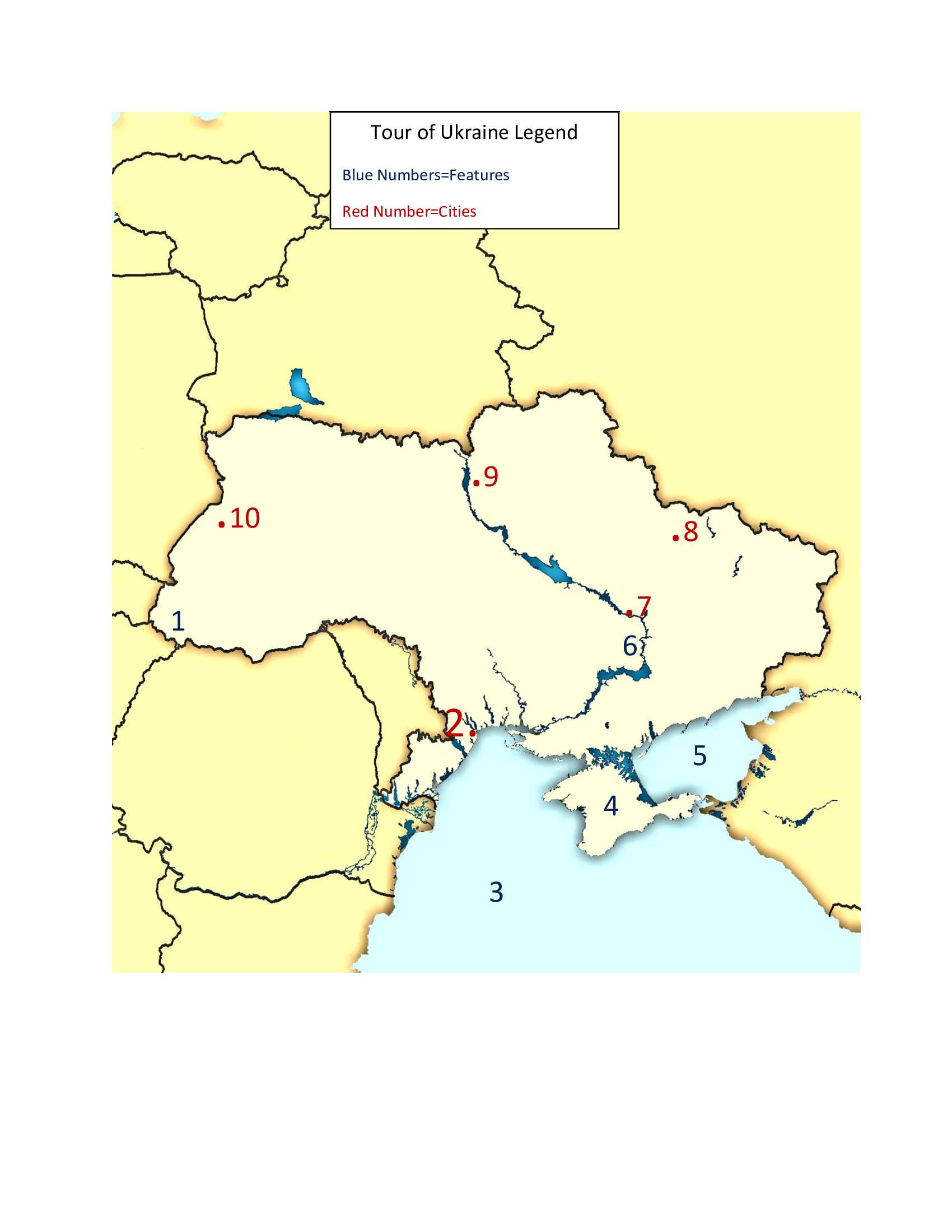 Match the number with its correct location on the map. Be sure to check out the legend on the map, as blue numbers designate geographic locations and red numbers designate cities.