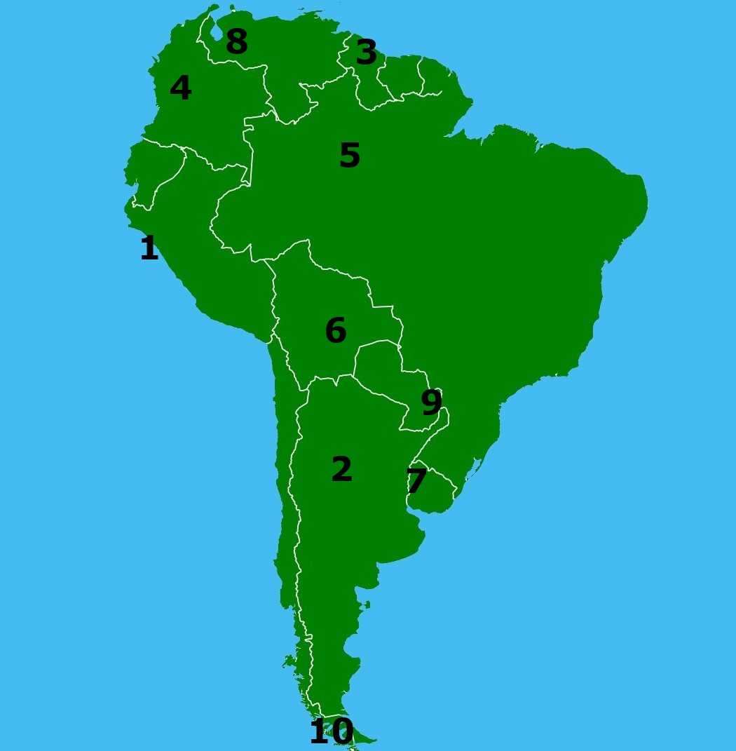 CórdobaGeorgetownPunta ArenasManausCiudad del EsteMedellínTrujilloSanta Cruz de la SierraBarquisimetoSalto* Drag / drop or click on the choices above to move them to the answer list. View Image Attributions for This Quiz