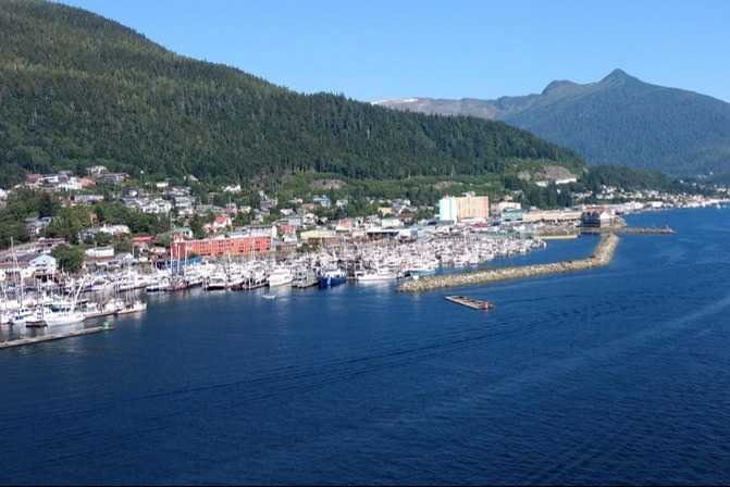 1. What major coastal city in southeastern Alaska is completely surrounded by mountains and water and can only be reached by boat or plane?
