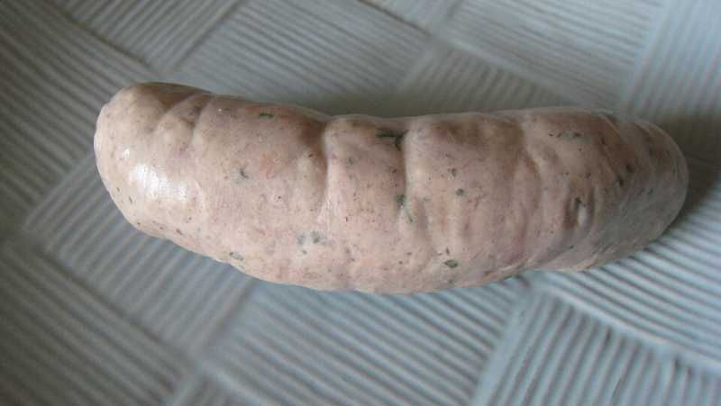 Basic pork sausages are made from ground pork and fat and a few herbs. There are many different types of sausages, and some butchers have their own special recipes, such as sage and onion, honey and mustard, and pork and apple. Cheap sausages can have less meat content and have breadcrumbs. The skins from sausages can be synthetic casings or animal intestines.