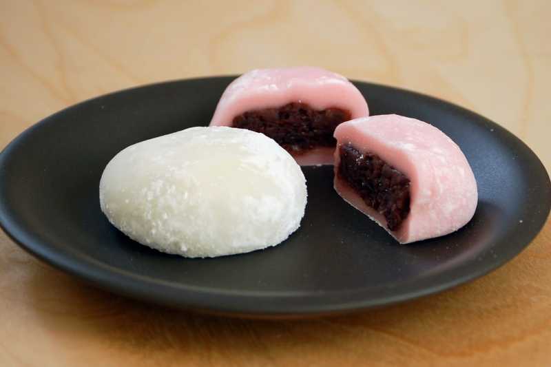 The stretchy mochi dough is wrapped around fillings such as sweetened red beans, strawberries, or cream, then dusted with powdered sugar. A more modern take on this sweet snack is mochi ice cream, in which a thin layer of mochi dough is wrapped around a small scoop of (usually vanilla) ice cream.