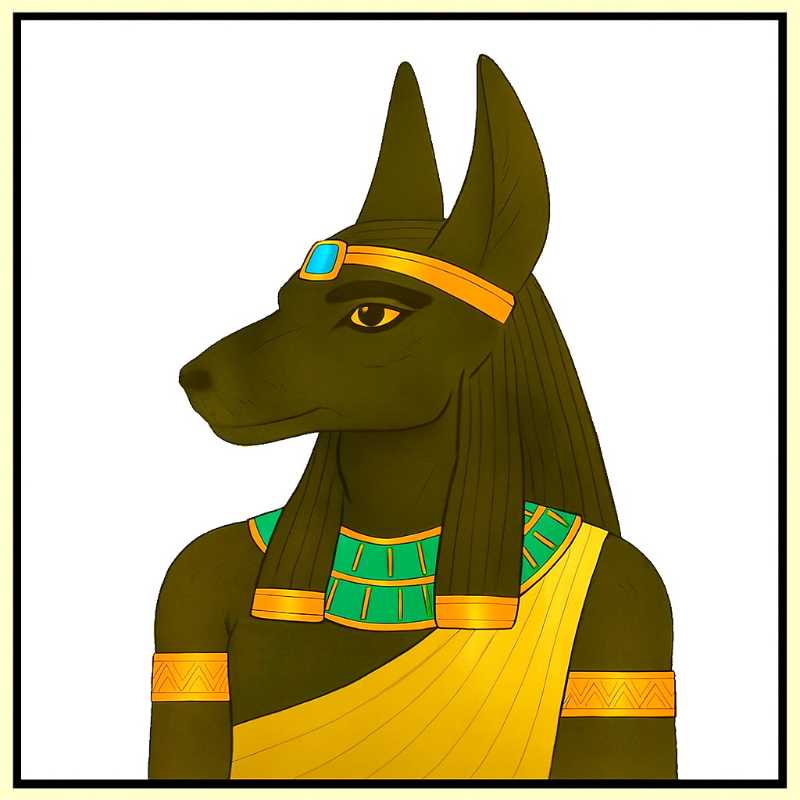 Anubis was an ancient Egyptian god of the dead, mummification, embalming, funerary rites, and guardian of the dead. He had the head of a jackal because they were often seen near cemeteries, and ancient Egyptians believed that they watched over the dead, protecting them.